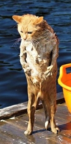 Now this cat is obviously getting a bath but you can tell how much he hates water. He just looks bedraggled, like the bird I saw. But I was very touched by this daddy bird. He was trying to train one of his fledglings how to eat from the feeder. He would show him, then he would feed him to make sure he understood the process. It was interesting and made me smile as all creation understand kindness. Mankind was the one that broke the system…in Eden…but that another story for another day. Today we are smiling.