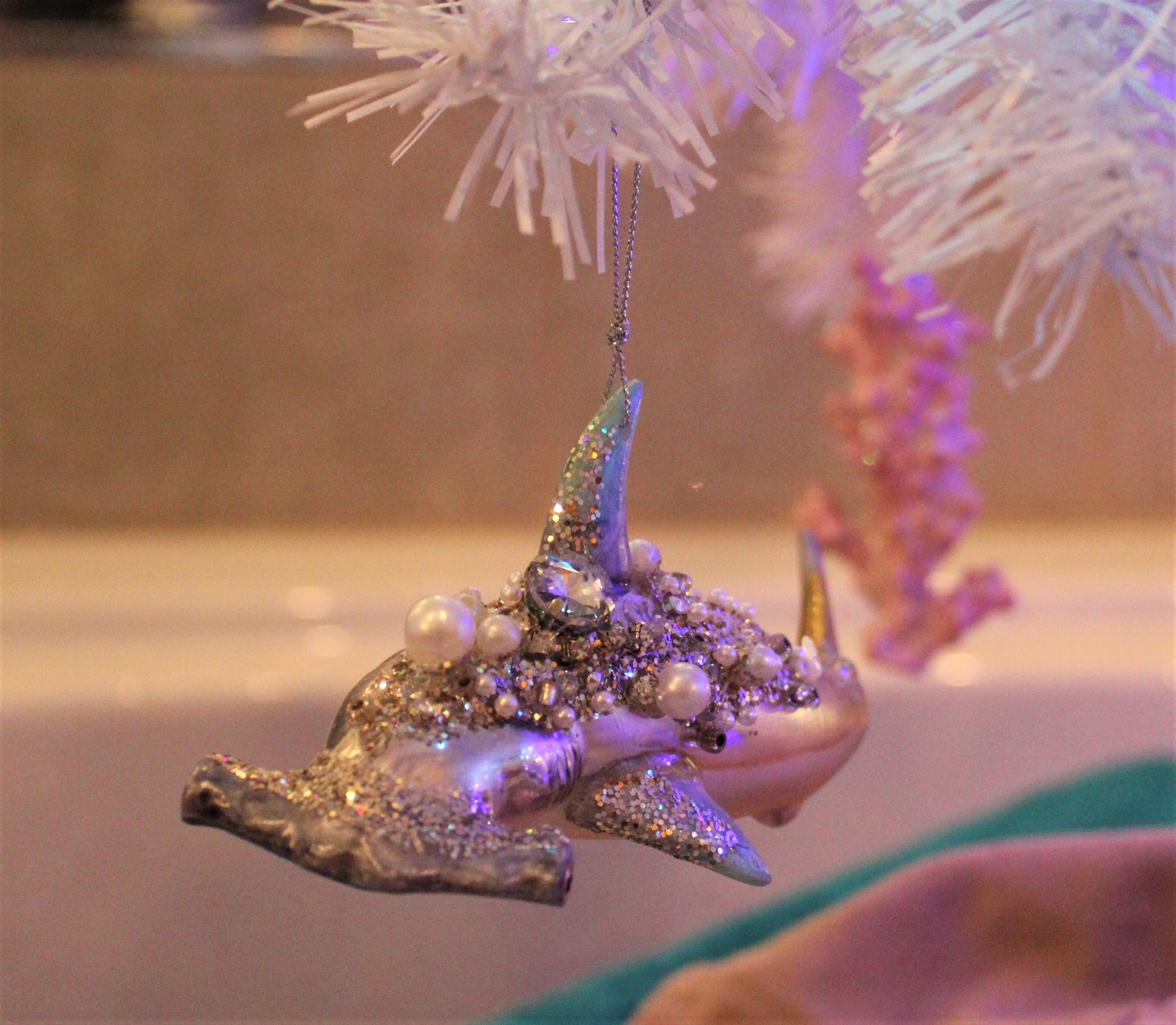 For the sharks and whales division, they are broken down by ceramic like the above manatee or glass with pearls added to represent bubbles in the water. Plus we girls like the bling anyway.