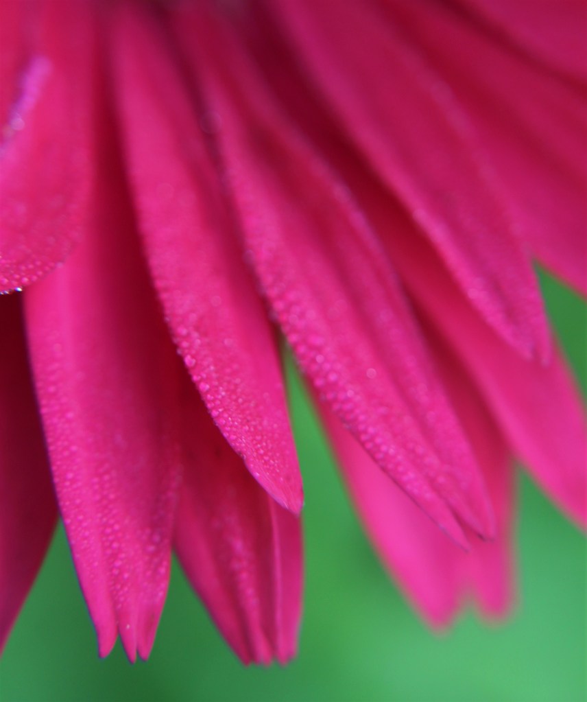 Early this morning the dew point was heavy and it rested thickly on the petals of my red daisy.