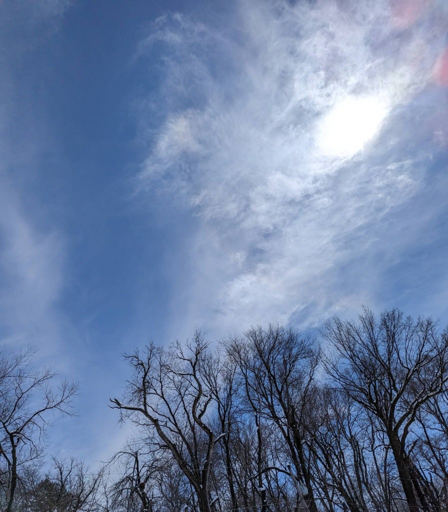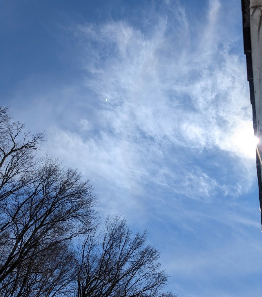 Today we had a series of storm fronts go through our area creating hail damage, wind damage and several tornadoes. The extent of the damage is still being assessed and unfortunately the storm front is still marching east creating havoc as it goes. But for now some of us have peace and the sky is magical as the clouds thin out and the setting sun creates colors that make us smile.