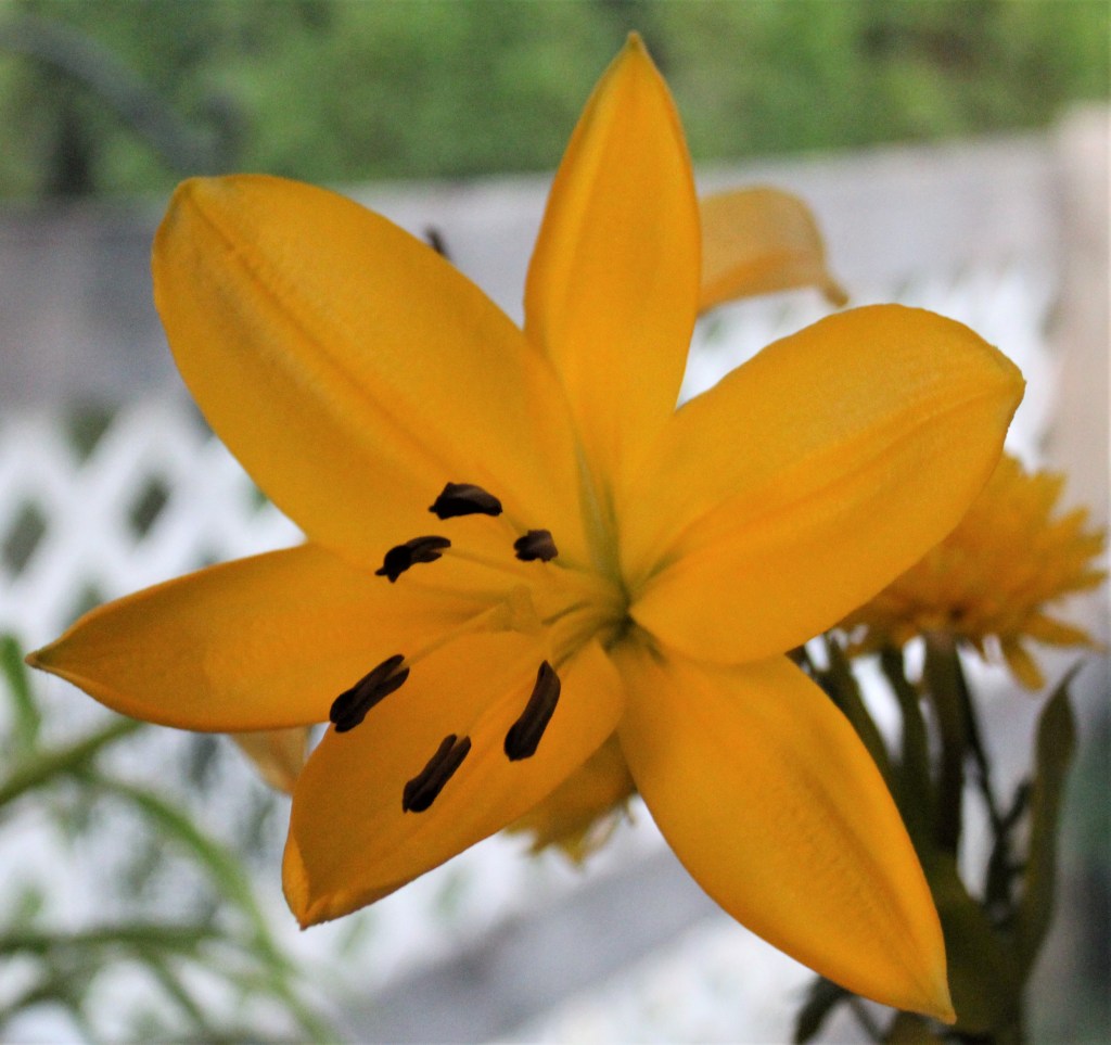 The purple flower goes with the green vine and I have no idea what it is called. It was in a flower pot of various plants that broke at the end of summer…still, it was determined to live. The lily is from an easter lily that I was given last spring and I forgot that I had laid it on the ground. The dog got into it in the fall and looky here, its trying to show its beauty. Nature has a resilience that people should learn from her. Stay strong, stay true to yourself, and beauty will come.