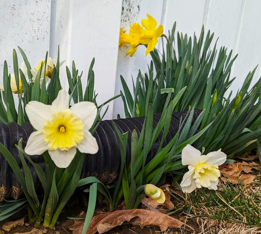 Cee’s Flower of the Day is always a wonderful reminder of the beauty of this earth. Spring is a time of rebirth of many bulbs, trees, and sometimes even us humans. Last fall I moved stuff around in yard and covered up one of my daffodil bulbs without realizing it. This morning as I was moving things again, I moved that block and was sad that I had coved a bulb and shocked at its determination to survive.