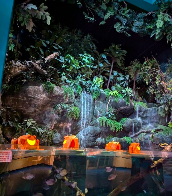 We also caught feeding time at the Piranha rain Forest that was set up for Halloween.