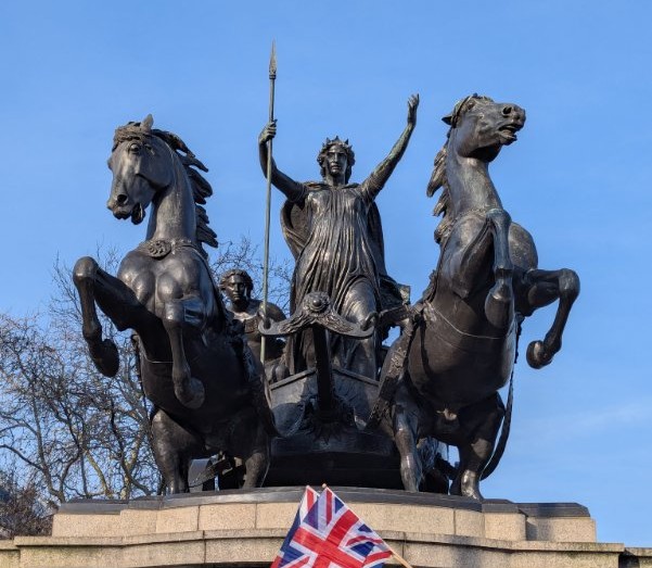 Continuing your walk down the Thames, the first statue/monument you see is that of Queen Boudica. Boudica or Boudicca was a queen of the ancient British Iceni tribe who led a failed uprising against the conquering forces of the Roman Empire in AD 60 or 61. She is considered a British national heroine and a symbol of the struggle for justice and independence.