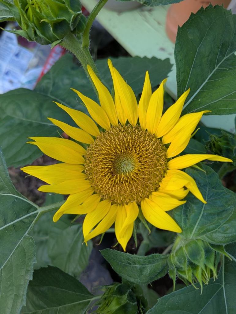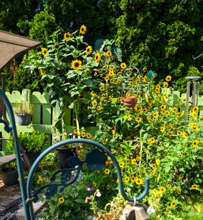 For the past several years, I have enjoyed the grand size and beauty of sunflowers. However, this year, due to medical concerns and knee replacement surgery, my gardening was scaled back significantly. But the birds disagreed with my decision and scattered seed from their feeder in various places in the yard.