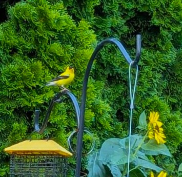 To me, the sunflower is a wonderful example of resilience in the face of storms and continued proof of God’s intricate design through all of creation. As we look at the single bloom, we see a happy flower sharing its gifts not only to us, but also to the bees and the many goldfinches that seem to love these flowers.