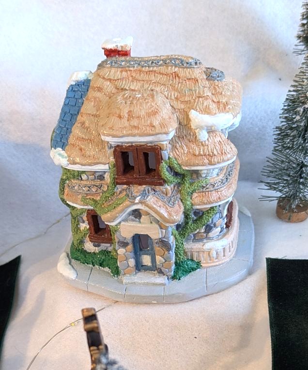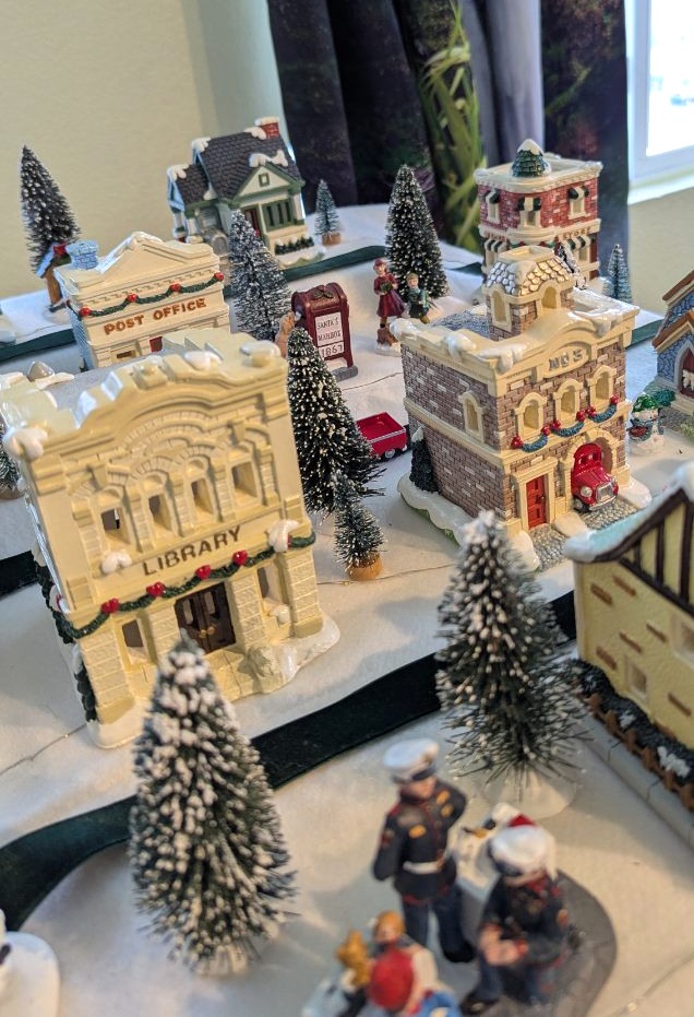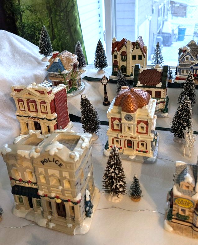 For the first few years, I gave some away, but then I saw others I liked and bought new ones. Today, of the plaster houses that I painted, I have 41. I have purchased a few that were already complete, that were totally different from what I had, like the observatory for stargazing, a large cathedral, and two different covered bridges.