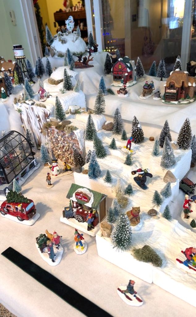 I will share a few pictures of my favorites, plus the ski mountain I created out of Styrofoam, which includes the abominable snowman, Bumble from the Rudolph movie. If this interests you, I hope you enjoy it.