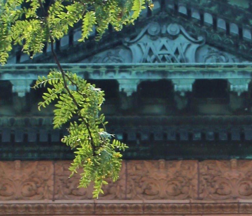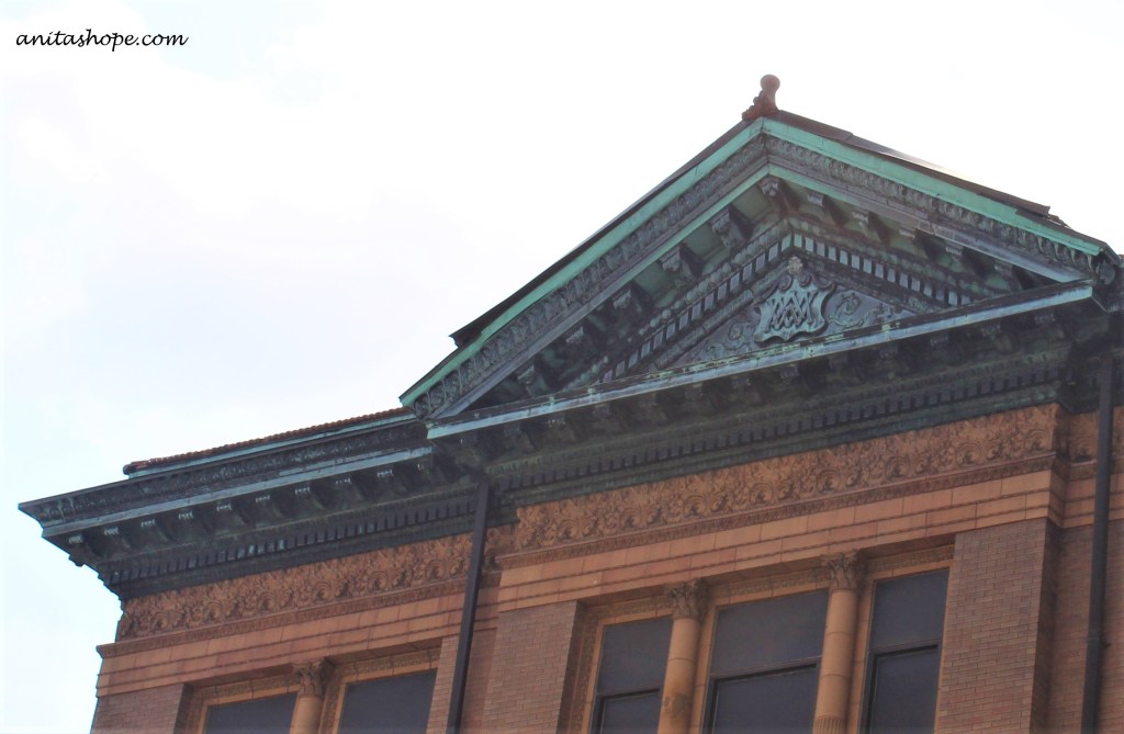 I did not make a post on Amazing Stonework buildings last week as weather was not camera outside weather. As a matter of fact, it cleared a bit on Friday when I was finally able to take these pictures of the First Presbyterian Church of Davenport. Another beautiful made of that colorful red granite.