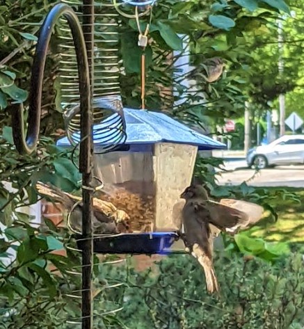 Same size bird, the beak seems slightly larger but his color is the most striking. He is not a bright red so I don’t know if that is a seasonal change but the biggest difference is his entire head is black. And there seems to be more black than usual mixed in his tail feathers. He is still beautiful. A difference in creation I guess. I think it is a reminder to us that in God’s eye we are perfectly beautiful, even though we may look different. Even identical twins are different in subtle ways.