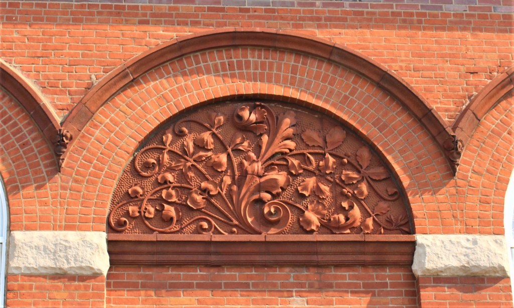 This church, built in 1889, was originally named Calvary Baptist but later became know as First Baptist. It is a building built with brick, carved stone and decorative concrete. One of the interesting features to me is the building corners which are not sharp corners but rounded. The steeple used to sit atop the squared off section above the door but a tornado came through in the 50s and sent the steeple through the roof – on top of the pipes for the organ. Yeah, those had to be replaced but they make a beautiful sound today.