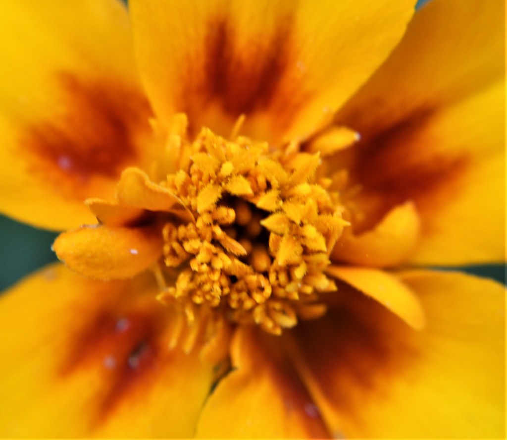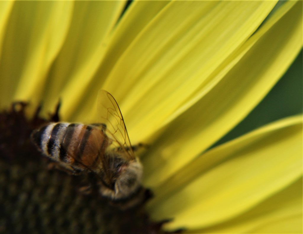 I love the concept of flowers within flowers. The sunflower seeds are maturing and you can see the tiny yellow flower of each seed.