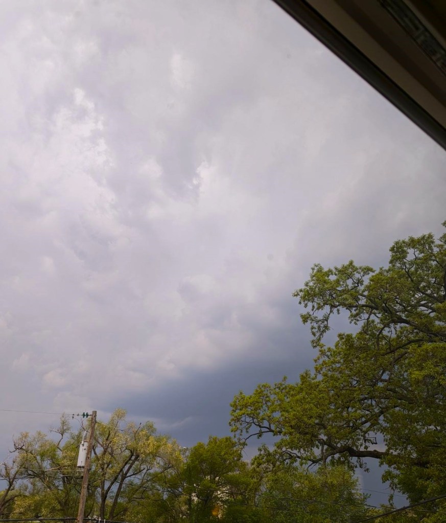 Yesterday for the Midwest, it was a turbulent day of rain, hail, wind, and tornadoes. Fortunately, we survived the madness but others did not fare as well. I don’t think anyone was injured but trees, powerlines and some buildings did get damaged. I got some interesting pictures I thought I would share of the ominous clouds as they passed over my house.